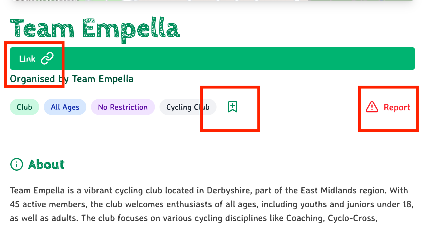 Entering a sport, pastime, support service or other keyword in the “What” search box will carry out a keyword search using the text you have supplied. For example typing”cycling” will return all events, locations and organisations linked to cycling across the Derby area